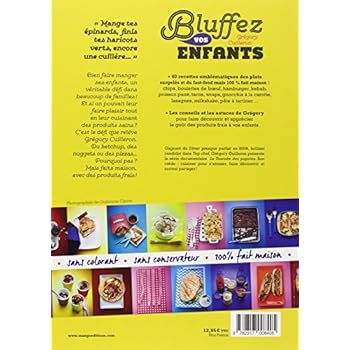 J'avais un doute lorsque je me suis finalement décidée à acheter ce livre de recettes ! (je suis fan des livres de recettes dédiés aux enfants et ne cuisinent qu'avec ce type de recettes (à quelques exceptions bien sûr ! - rires - )J'avais peur de recettes trop américaines ! (trop grasses ! hum !)Alors, résultat après 3 recettes testées ! Oui, ma crainte côté qualités des recettes est bien là, je réduis un peu les doses de beurre et gras et tout passe très bien. C'est SUCCULENT !40 RECETTES APPROUVEES PAR LES ENFANTSSANS COLORANTSANS CONSERVATEUR100% FAIT MAISON !!!MAIS LES HOT DOGS ? Comment ?...Et bien, justement, Grégory Cuilleron vous propose la recette des petits pains ! oui ! tout est expliqué ! même LES SAUCES !!! Ketchup maison... TOUT MAISON !FACILITE DE REALISATION par ailleurs !Je ne peux que donner 5 étoiles à ce superbe livre !SOMMAIRECOTE SALEchips et pop corn maisonnems au porc et aux légumespetits feuilletés à la saucissemozarella stickscroque monsieurgratin de chou fleurboulettes de boeufgratin de macaroni ! MAIS PAS N'IMPORTE QUELLE RECETTE !!!crêpes jambon fromage champignonsCordon bleuquiche lorraineKebab LE VRAI DE VRAI !!!!pizza reginapoisson pané purée vertetacos avocat boeufhamburger MEILLEUR QU AU FAST FOODpotatoes à TOMBER !!!hot dog avec une knack maisonclub sandwich au pouletjambon coquillettes comme des endives au jambon ! TESTEE ON A ADORENuggets au pouletwraps au pouletgnocchi à la carottehachis parmentierjardinière de légumeschicken wingssaucisse PUrée !!! MAIS PAS N'IMPORTE COMMENT C'est EXTRA !!!lasagnes fondantes ! oui oui ! EXTRA !!mayonnaisevinaigrettesauce barbecueketchupsauce béchamelPains à hamburger ou à hot dogCOTE SUCRESundae maisoncarrés au riz soufflébrownie choco noisettesguimauvemousse au chocolat SURPRISEpâte à tartinerpancakesvéritables cookies américainsbarre de céréalesbeignets à tombermilshake aux fruitsREGALEZ VOUS !!!!!